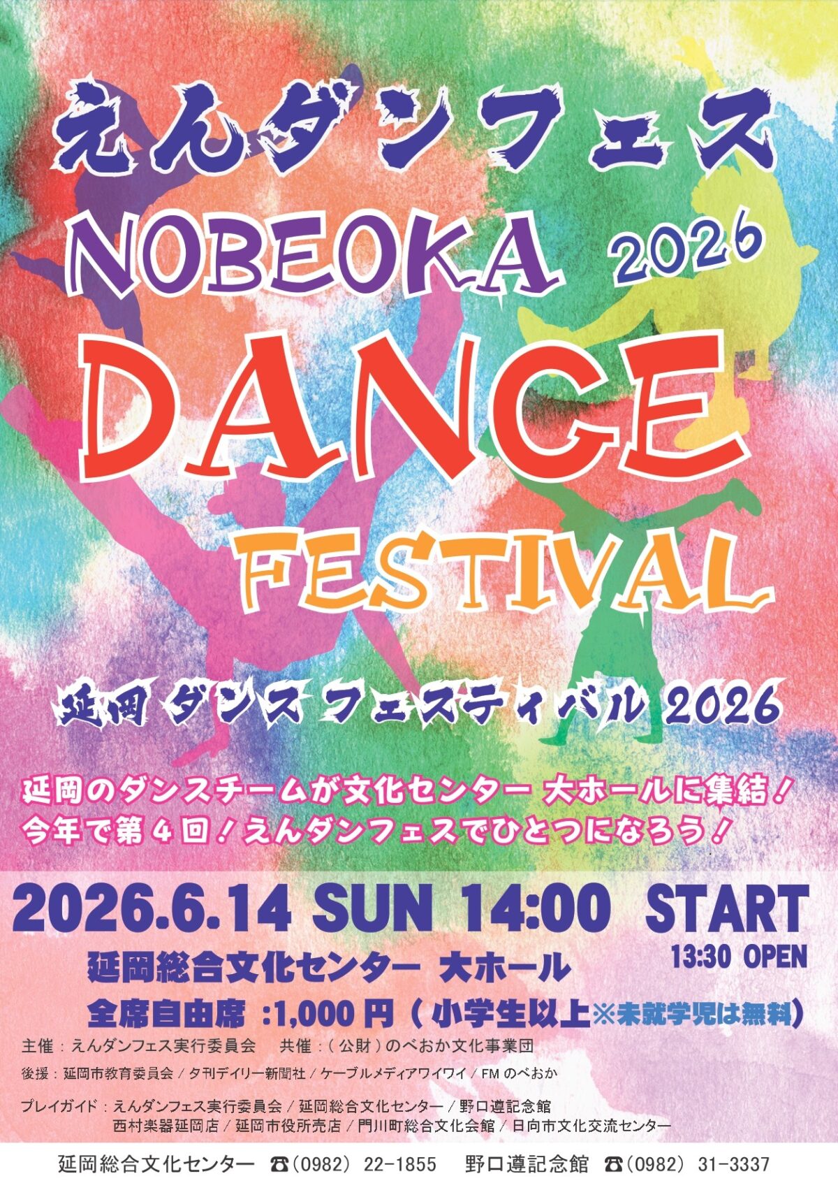 本日のイベント 4月29日( 水 ) 大ホール 本日のイベントはありません 小ホール 本日のイベントはありません 展示室1 本日のイベントはありません 展示室2 本日のイベントはありません ピックアップイベントPICK UP 初回は2026年4月26日(日) 全12回/月1回 ◆はじめてコース 10:00~12:00 ◆しっかり学ぼうコース 14:00~16:00 令和8年度 みんなで楽しもう!健康マージャン 2026年5月17日(日) 開場14:15 開演15:00 宮川大輔×ケンドーコバヤシ トークライブ 「あんぎゃー」 宮崎公演 チケット発売中! 2026年6月14日(日) 開場13:30 開演14:00 延岡ダンスフェスティバル2026 チケット発売中! 2026年7月26日(日) 開場12:30 開演13:00 第4回のべおか童謡コンサート チケット発売中! イベント情報 お知らせINFORMATION 2025.11.10 延岡総合文化センター開館40周年記念 「文化祈念シンポジウム」の開催について 2025.09.25 「爆笑!!お笑いフェスinのべおか」で来延したお笑いタレント塙さんのYouTubeで延岡名物の「チキン南蛮」と「辛麺」が絶賛! 2024.11.29 公演チケットのオンライン購入について 2024.08.09 聴覚障がい者補聴誘導システム受信機貸出しのご案内 お知らせ一覧
